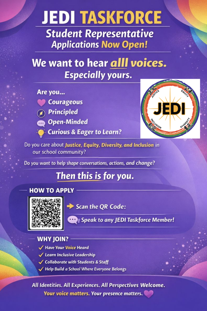 Next Wednesday February 4 (Day 4) 16 students from Grade 8 – 11 on the attached list will be absent from school at 11am for ACAMIS Basketball tournament in Beijing, and they will be absent on Thursday and Friday. Thank you for your understanding and support. Here is the name list. - Student Representative Applications – JEDI Taskforceby Iryna Klyuk