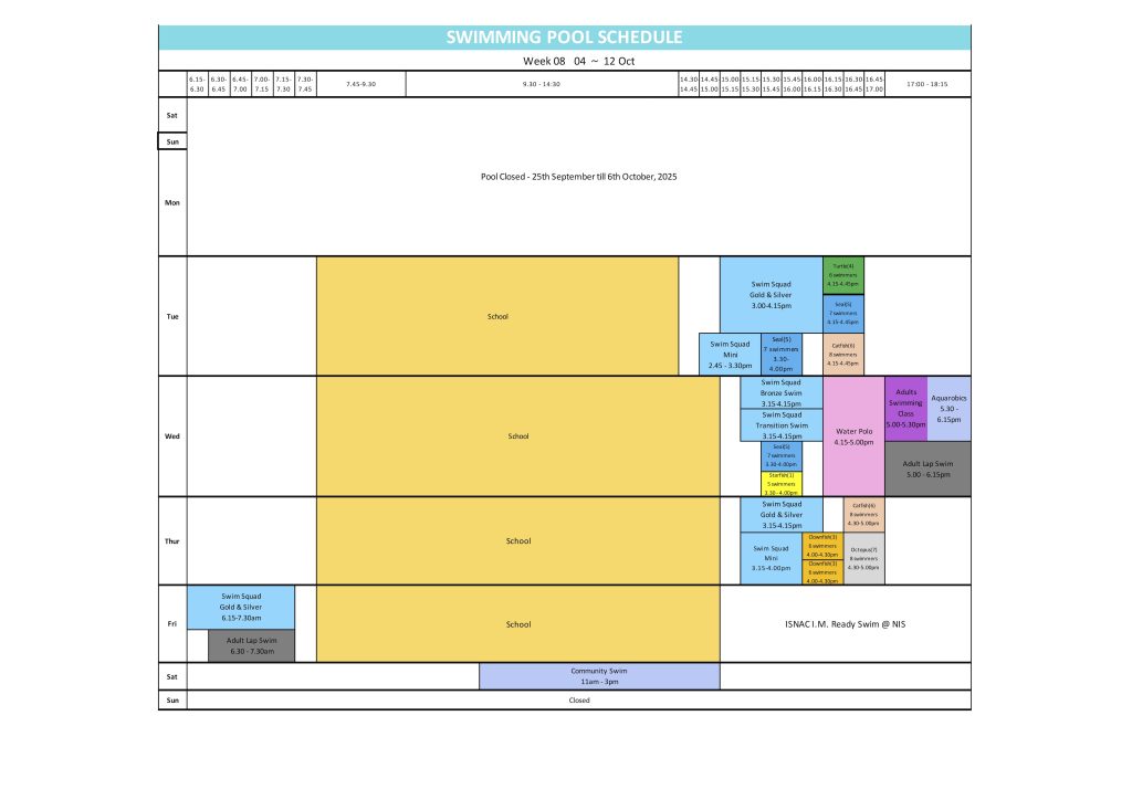Due to scheduled facilities maintenance, system testing and renovation work, NIS campus will be under closed management during October Break from Sep. 28th 0000h to Oct 6th 2400h, except for the Fitness Room.
