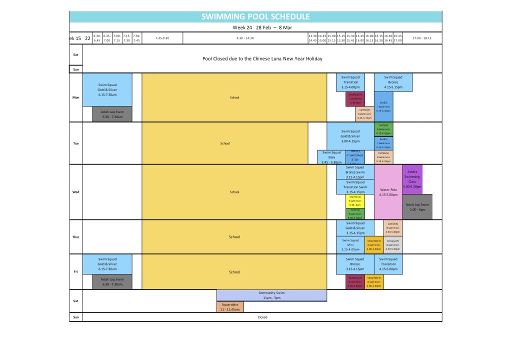 Swimming Pool Schedule – Week 24