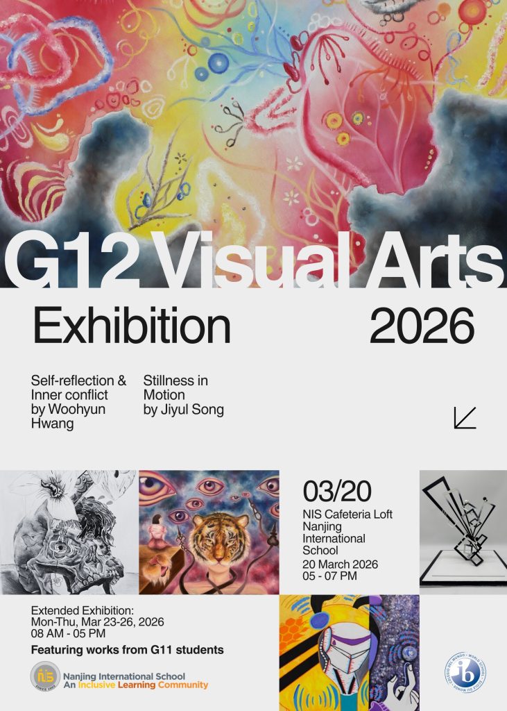 We are excited to invite you to the Grade 12 DP Visual Arts Exhibition 2026, showcasing the creative achievements of our talented young artists. Over two years of intensive study, our Grade 12 students have produced a diverse range of works, thoughtfully curated by Woohyun Hwang and Jiyul Song. This exhibition also features selected works from our Grade 11 visual artists.